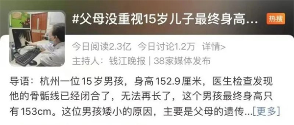 15歲男孩最終身高1米53,骨骼閉合無法干預,不得不說,這個身高對于男孩來說,也是低于平均身高的,挺遺憾的是,如果家長有干預身高的意識,早些進行監(jiān)測就好了。