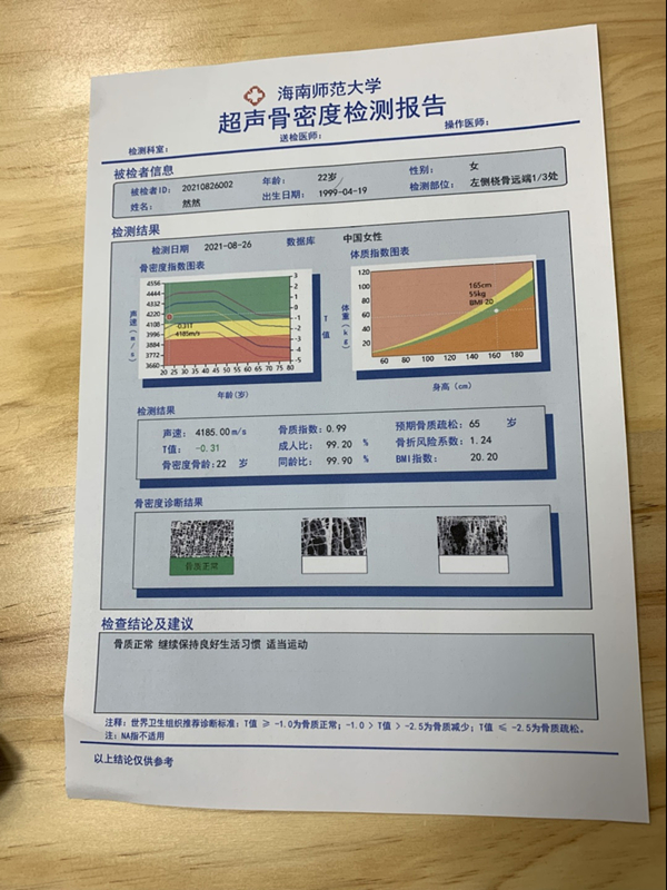 超聲骨密度儀裝機案例,海南師范大學采購品源骨密度檢測儀BMD-A1